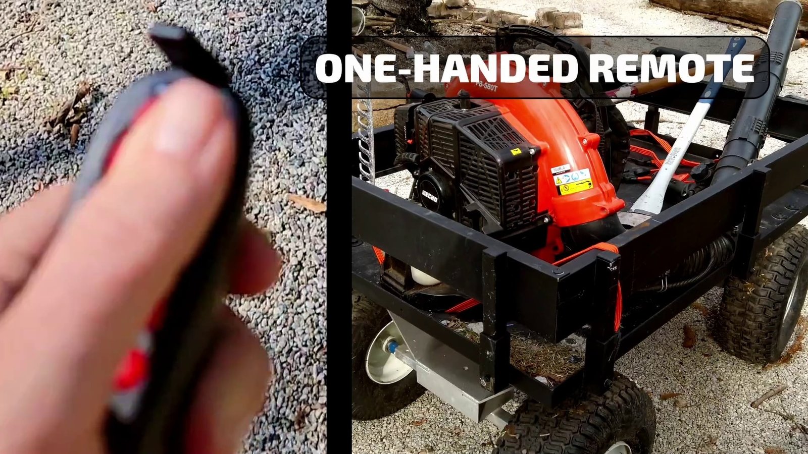 Guided with a wireless remote, SherpaCart can move up to 800 lbs of cargo safely on most terrain with 6 inches of ground clearance. The one-handed remote allows anyone, old to young, to safely move cargo of all types in your garden, such as landscaping gear & gardening supplies like mulch, gravel, dirt, plants and rock.
